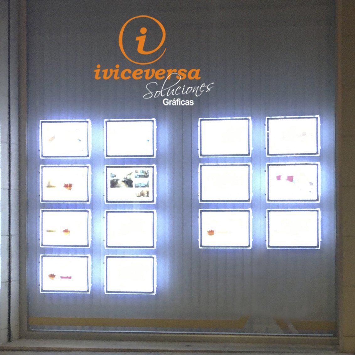 Todo tipo de escaparate y soportes publicitarios, en distintos materiales: metacrilato, led, colgante, de pie, ...